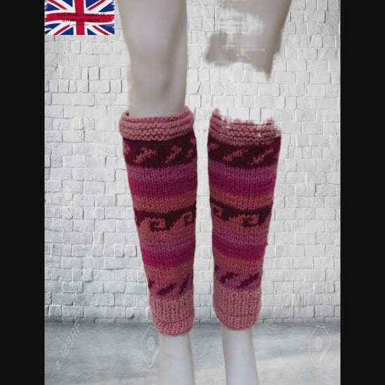 Ladies Womens Winter 100% Wool Leg Warmers Hand Knit Fleece Lined With Side Zips P11