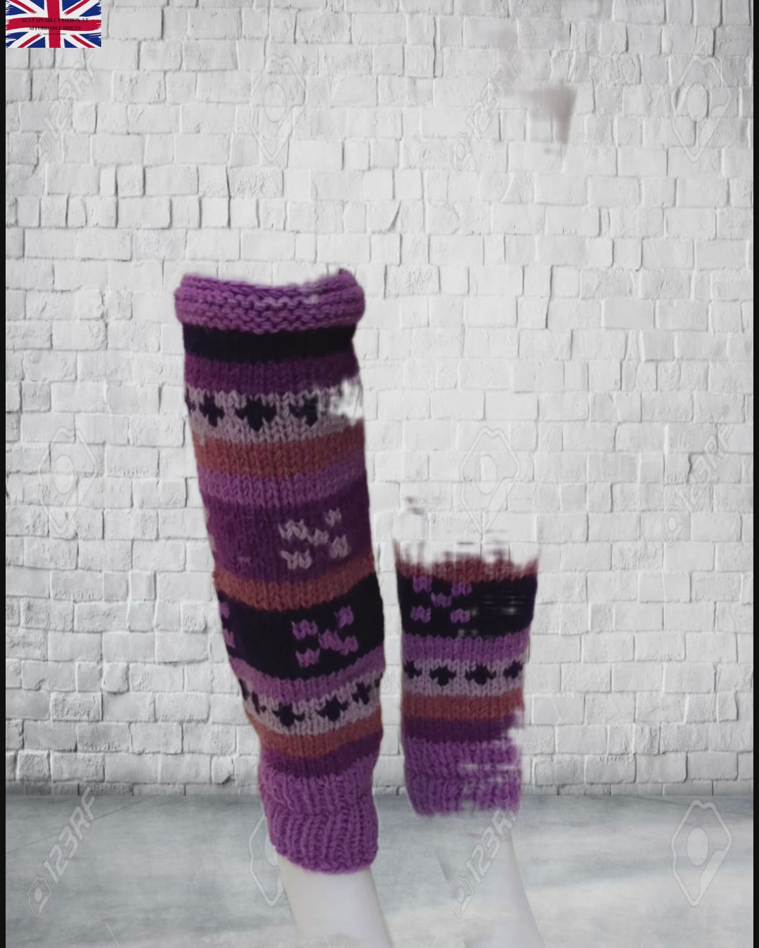 Ladies Womens Winter 100% Wool Leg Warmers Hand Knit Fleece Lined With Side Zips P12