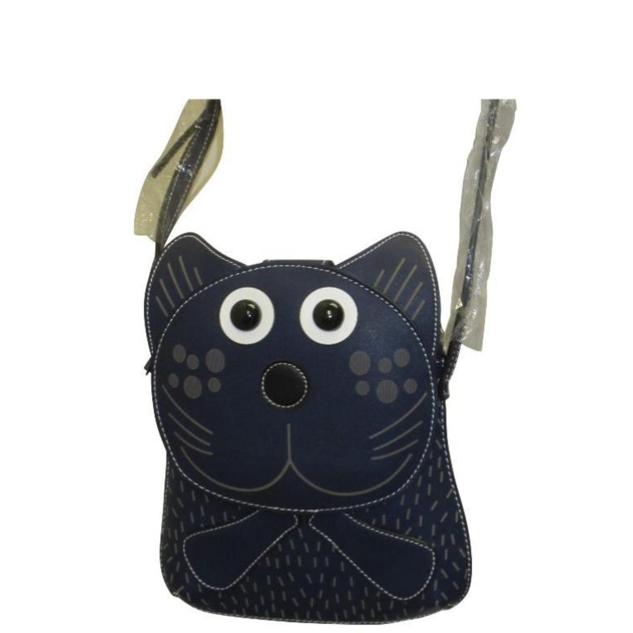 FUNKY FAUX LEATHER CAT MAGNETIC CLASP ZIPPER ADJUSTABLE STRAP SMALL ANIMAL CROSS BODY BAG BLUE