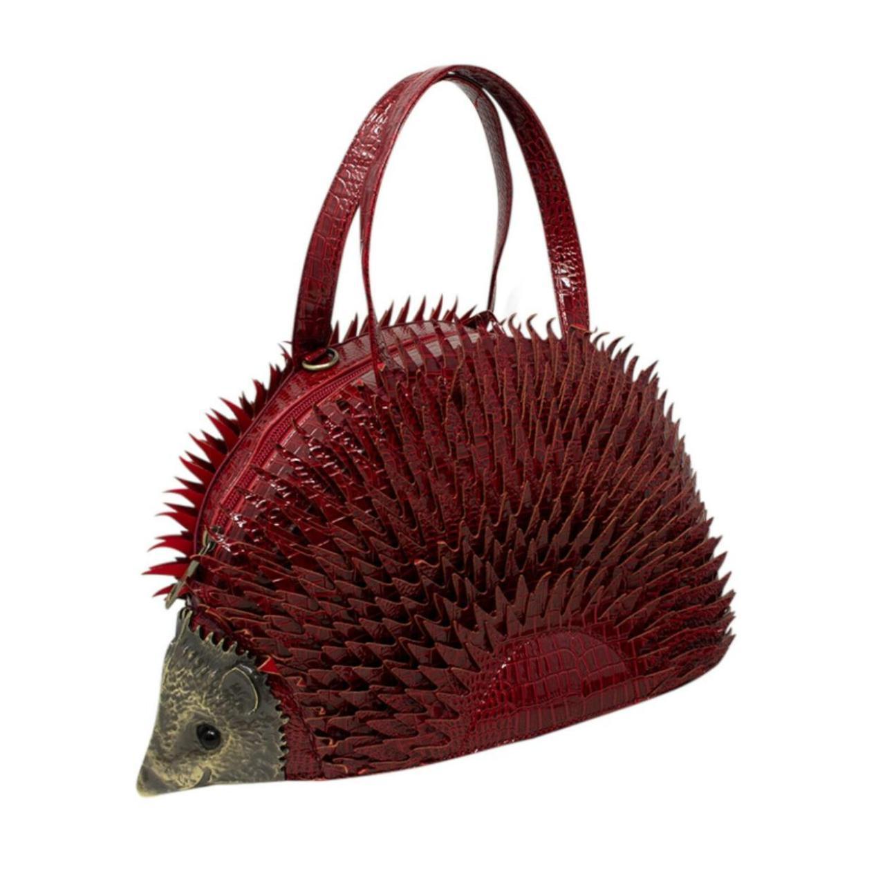 FUNKY RETRO STATEMENT VEGAN LEATHER CROC EFFECT HEDGEHOG 3D SPIKED HANDBAG RED