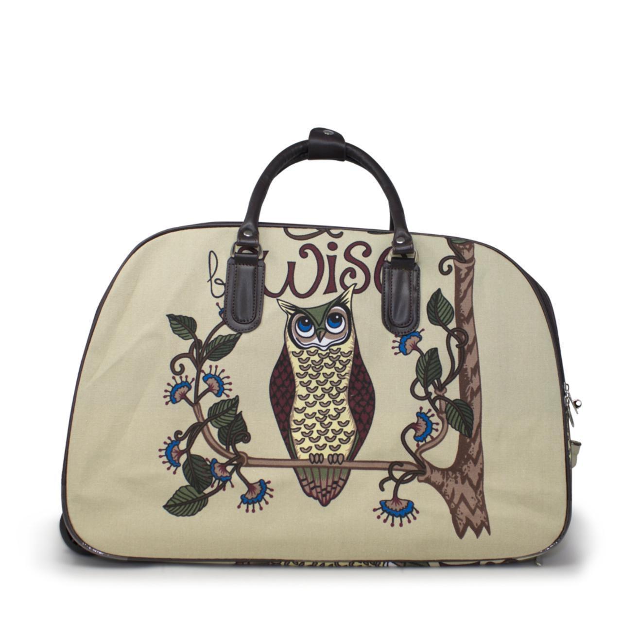 FUNKY RETRO-WISE OWL PRINT MULTI ZIP HOLDALL TRAVEL DUFFEL BAG WITH WHEELS
