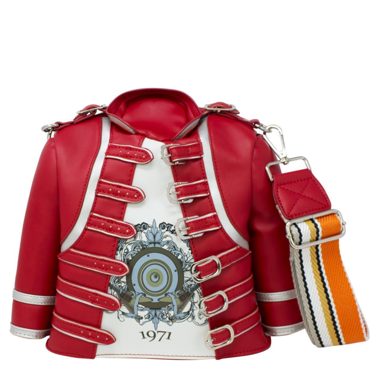 FUNKY STATEMENT MILITARY SOLDIER BUCKLE VEGAN LEATHER CROSS-BODY SHOULDER BAG RED