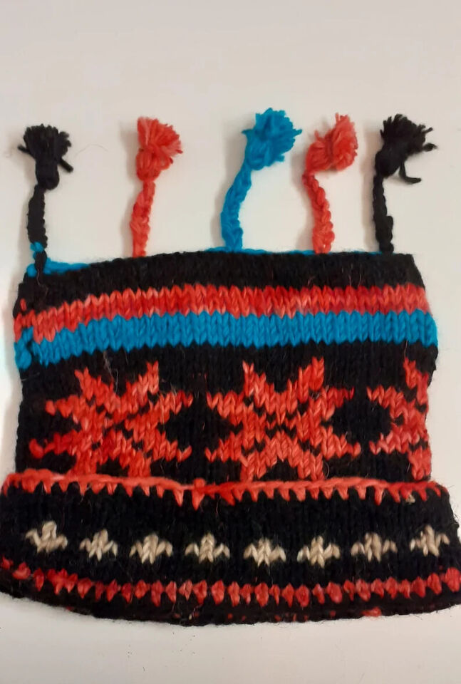 HANDMADE WOOL KNIT WARM WINTER BEANIE MULTI TASSELS BOHO FLEECE LINED HAT P452