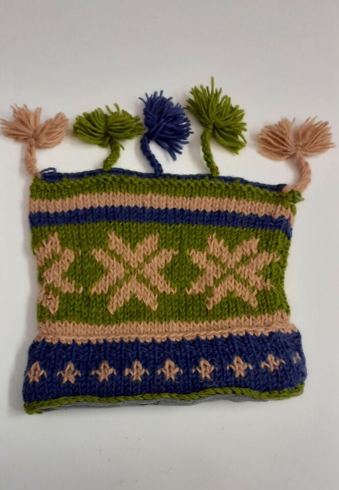 HANDMADE WOOL KNIT WARM WINTER BEANIE MULTI TASSELS BOHO FLEECE LINED HAT P473