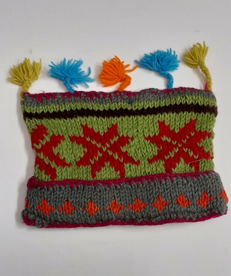 HANDMADE WOOL KNIT WARM WINTER BEANIE MULTI TASSELS BOHO FLEECE LINED HAT P482