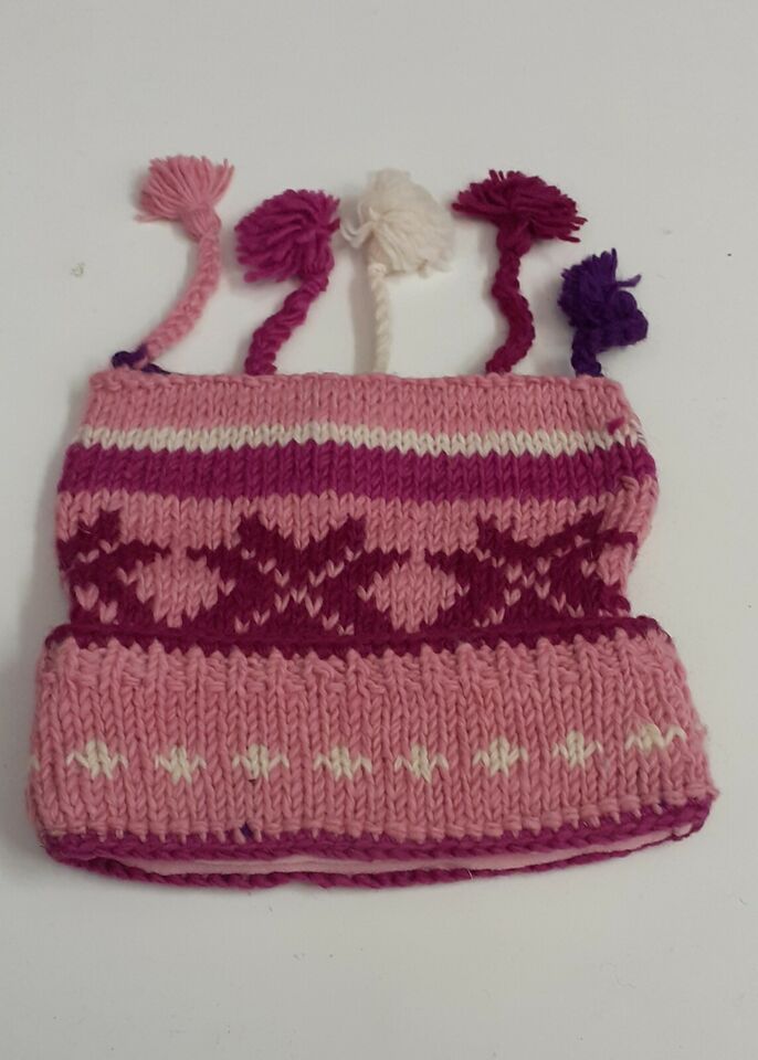HANDMADE WOOL KNIT WARM WINTER BEANIE MULTI TASSELS BOHO FLEECE LINED HAT P489