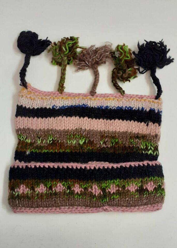HANDMADE WOOL KNIT WARM WINTER BEANIE MULTI TASSELS BOHO FLEECE LINED HAT P493