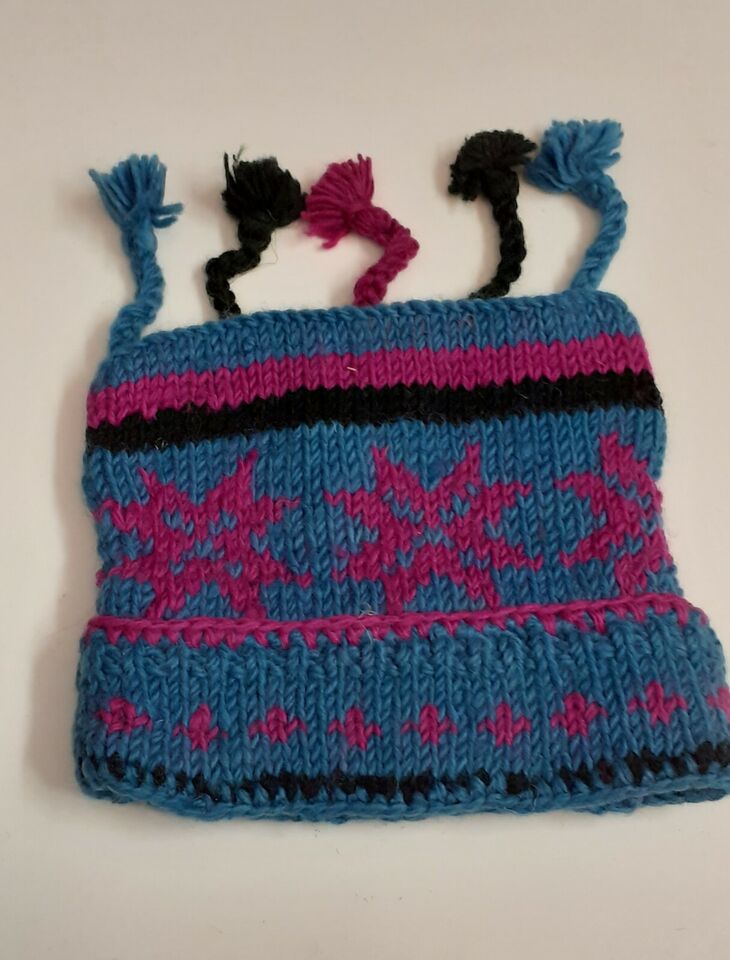 HANDMADE WOOL KNIT WARM WINTER BEANIE MULTI TASSELS BOHO FLEECE LINED HAT P496