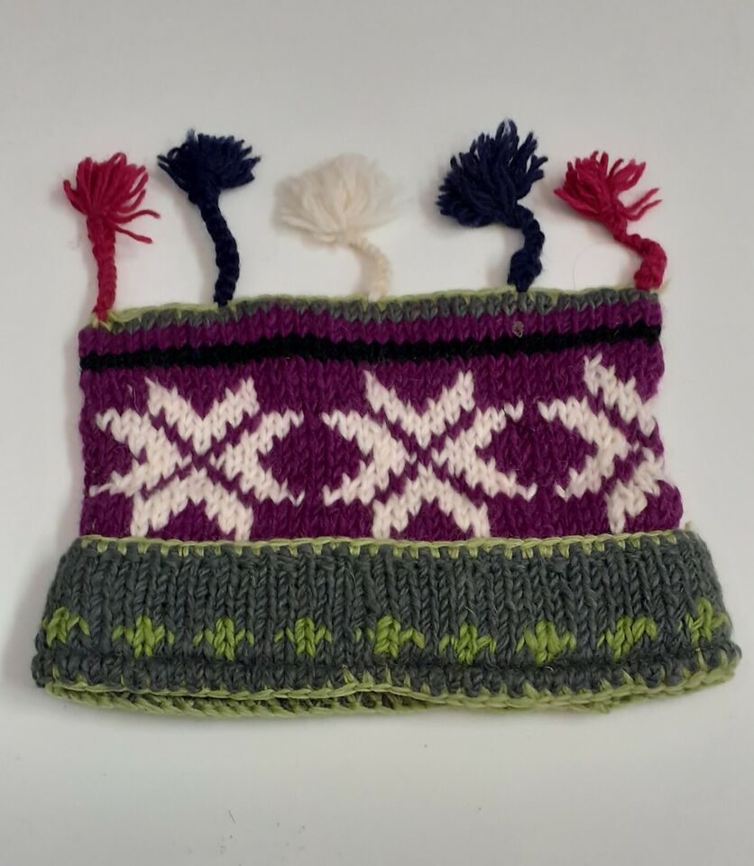 HANDMADE WOOL KNIT WARM WINTER BEANIE MULTI TASSELS BOHO FLEECE LINED HAT P508