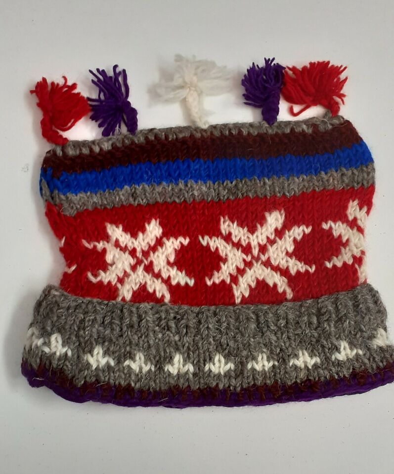 HANDMADE WOOL KNIT WARM WINTER BEANIE MULTI TASSELS BOHO FLEECE LINED HAT P512