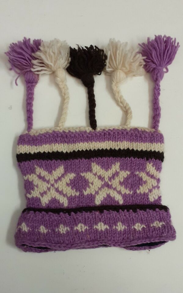 HANDMADE WOOL KNIT WARM WINTER BEANIE MULTI TASSELS BOHO FLEECE LINED HAT P514