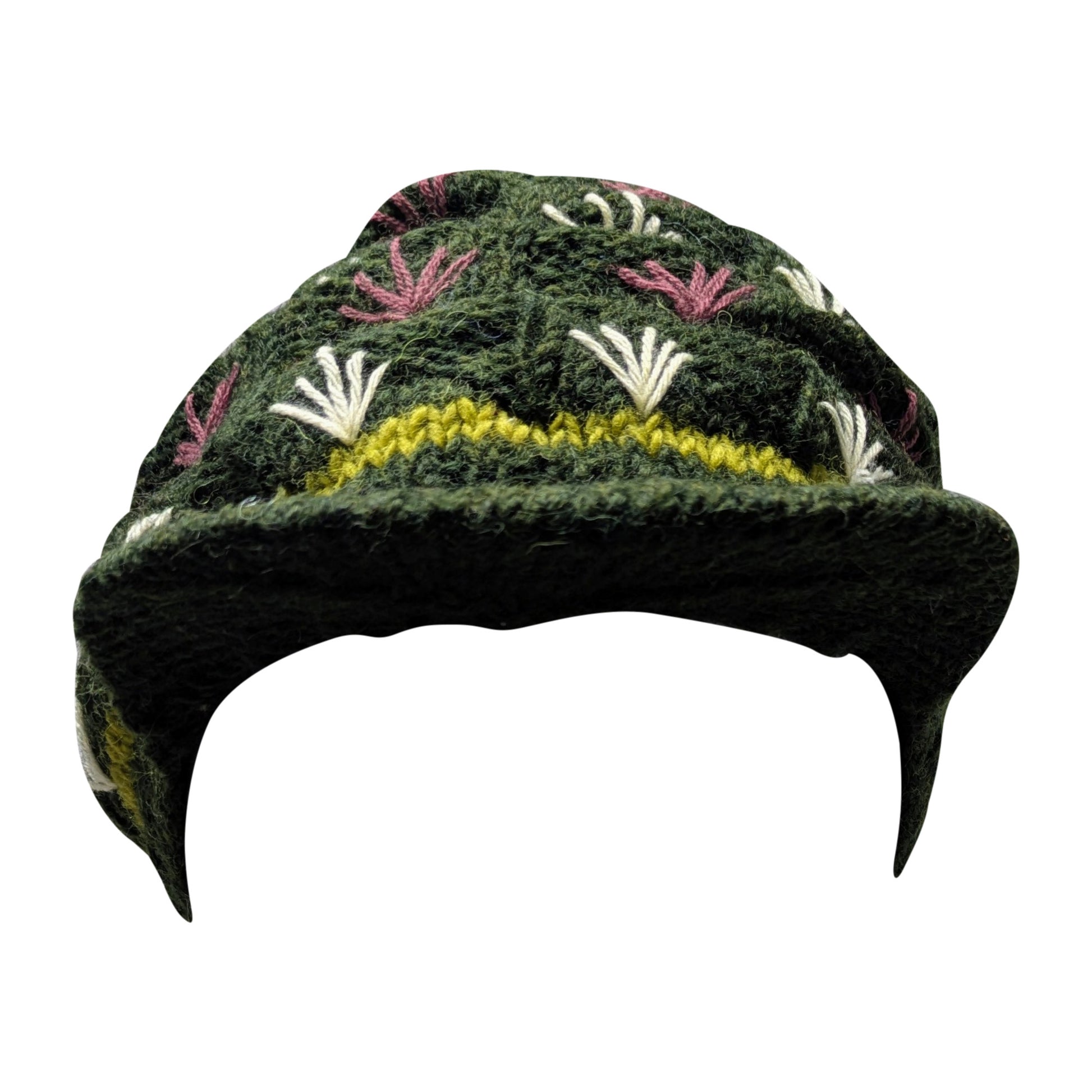 Recycled Hand Knit Tiered Wool Crochet Winter Fleece Lined Baker Hat P14