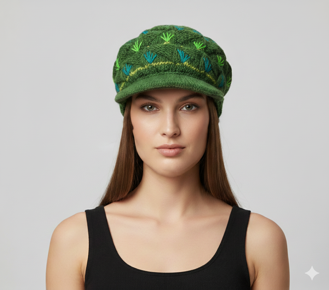 Recycled Hand Knit Tiered Wool Crochet Winter Fleece Lined Baker Hat P7