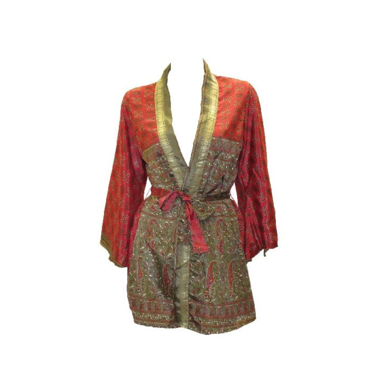 RECYCLED RETRO SARI KIMONO BEACH COVER-UP BOHO MINI ROBE FREE SIZE UP TO 12 P6