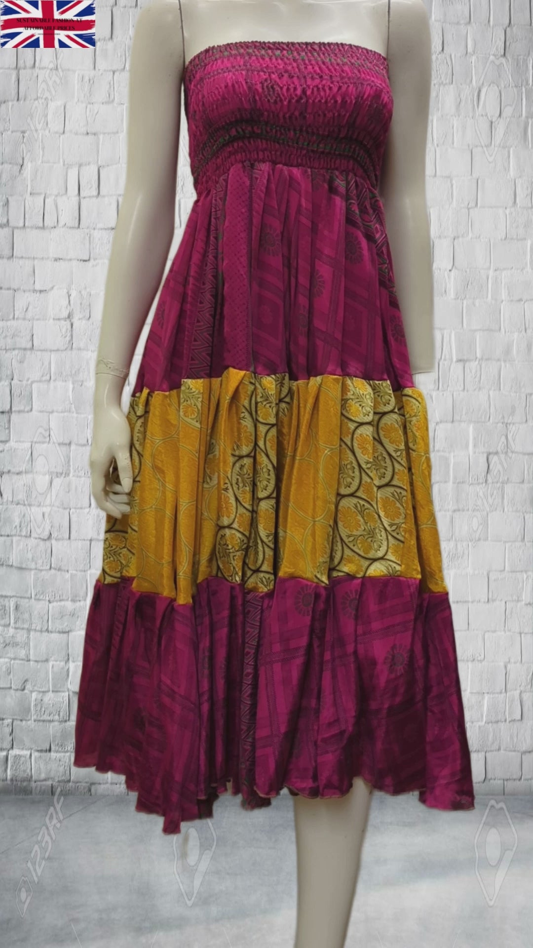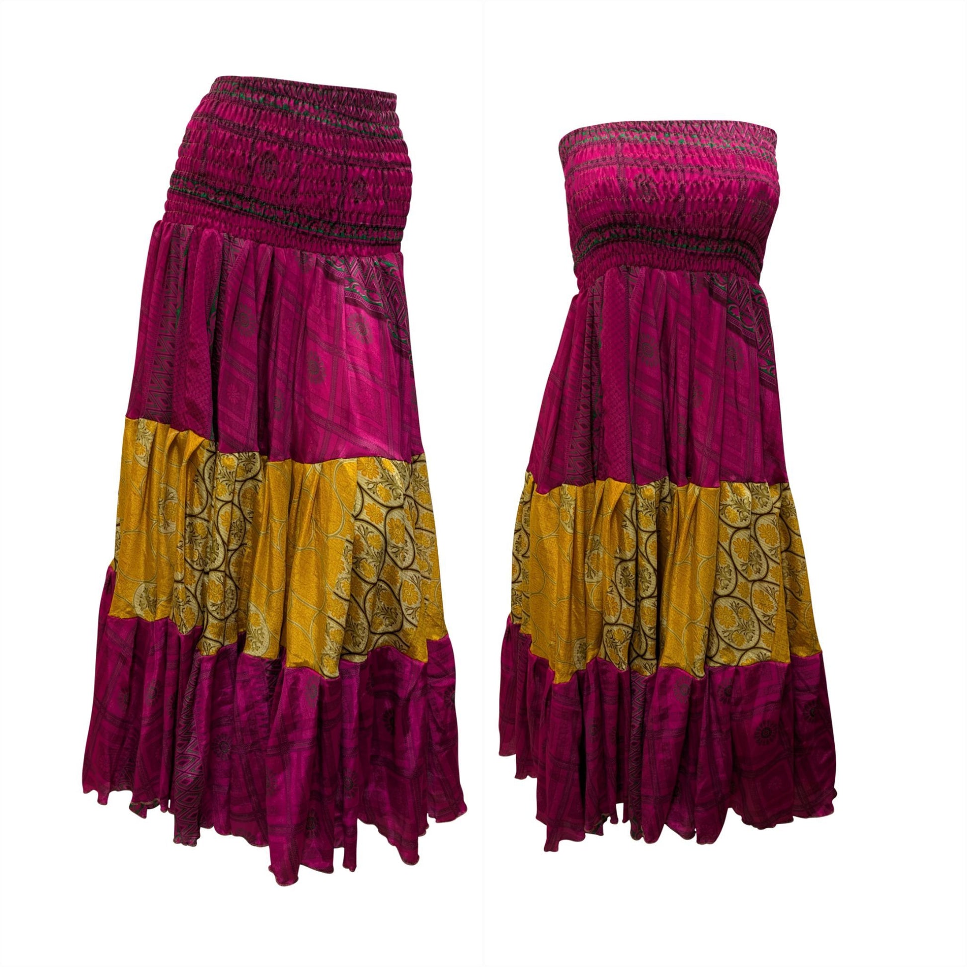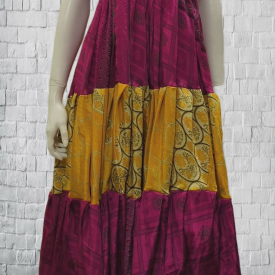 Upcycled 2in1 Skirt and Dress Retro Shirred Festival Boho Tiered Flowy Maxi Free Size Up To 20 P43