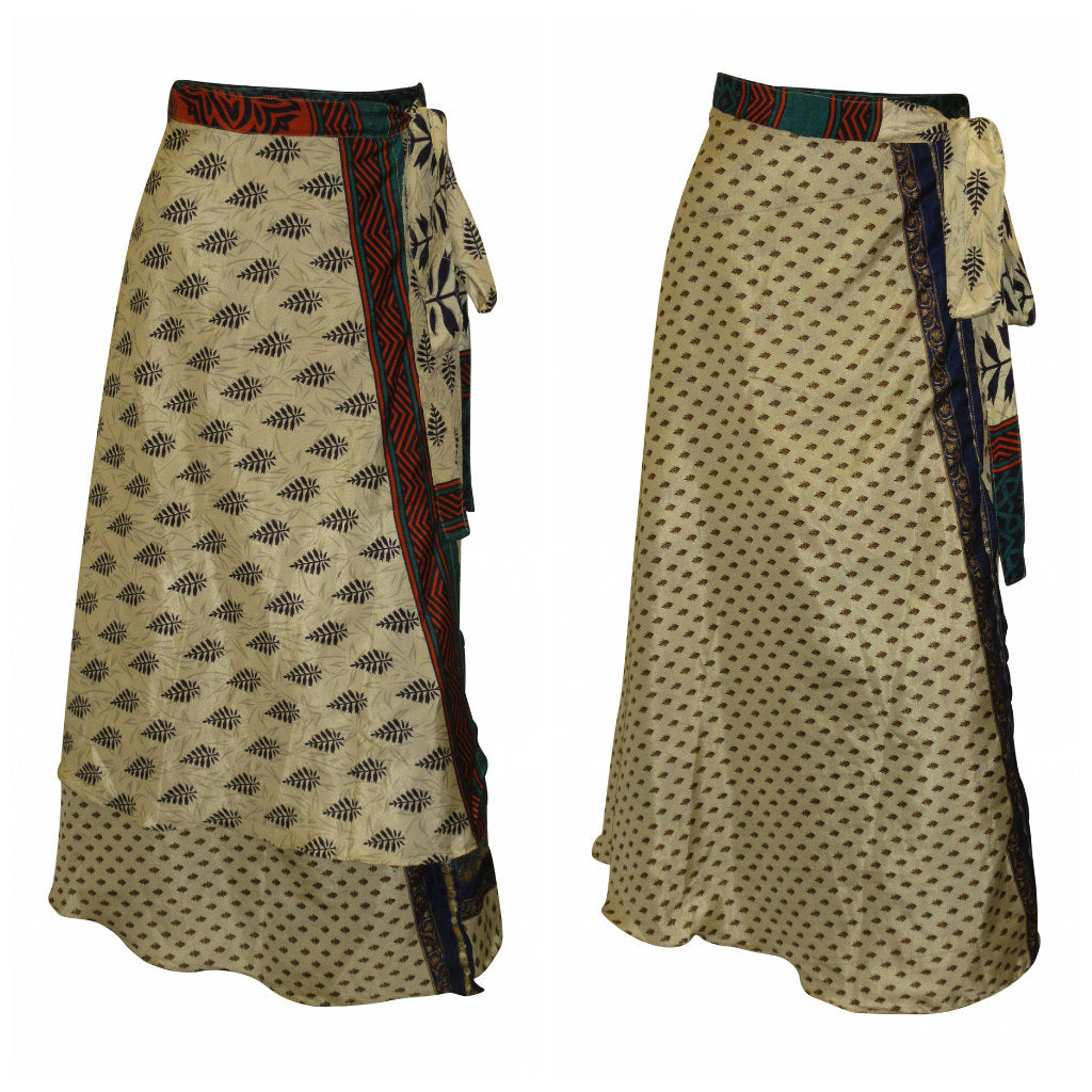 RECYCLED RETRO WRAP AROUND SKIRT LAYERED REVERSIBLE MIDI FREESIZE UP TO 20 P102