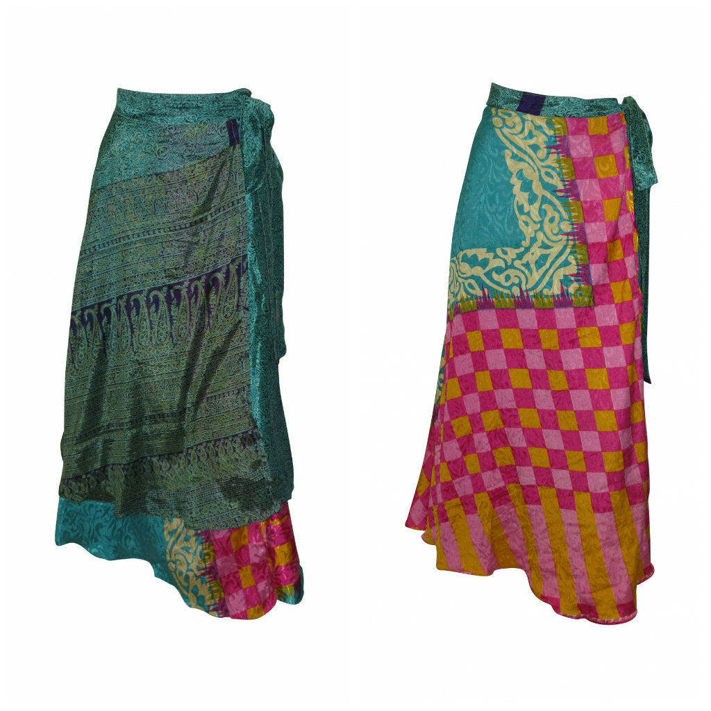 RECYCLED RETRO WRAP AROUND SKIRT LAYERED REVERSIBLE MIDI FREESIZE UP TO 20 P106