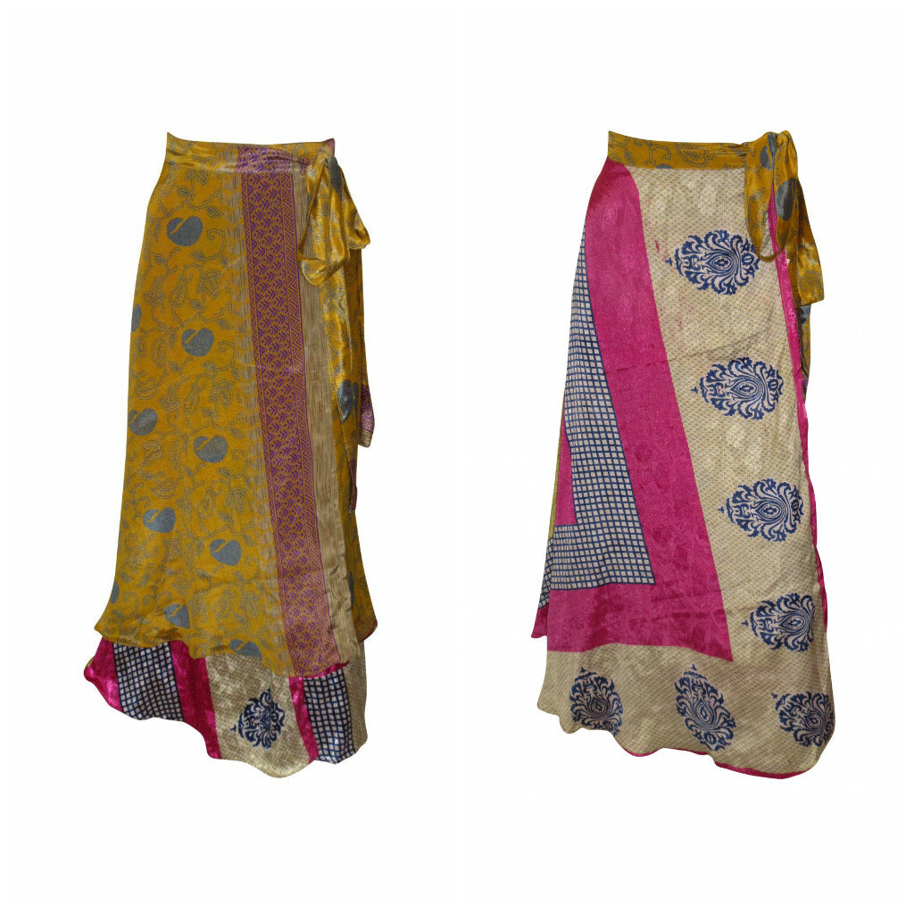RECYCLED RETRO WRAP AROUND SKIRT LAYERED REVERSIBLE MIDI FREESIZE UP TO 20 P114