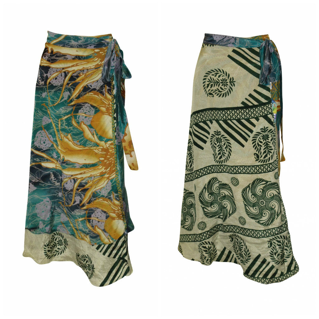 RECYCLED RETRO WRAP AROUND SKIRT LAYERED REVERSIBLE MIDI FREESIZE UP TO 20 P125