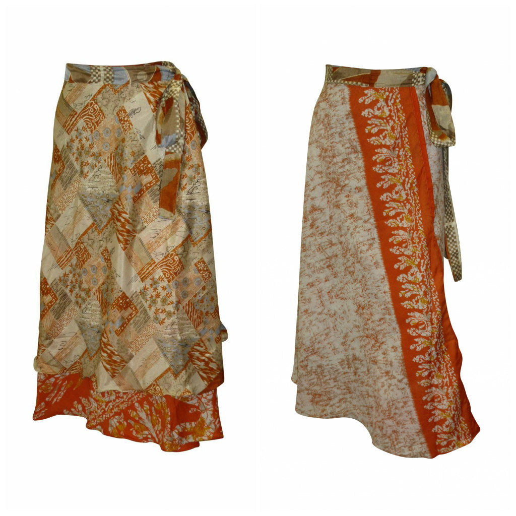 RECYCLED RETRO WRAP AROUND SKIRT LAYERED REVERSIBLE MIDI FREESIZE UP TO 20 P129