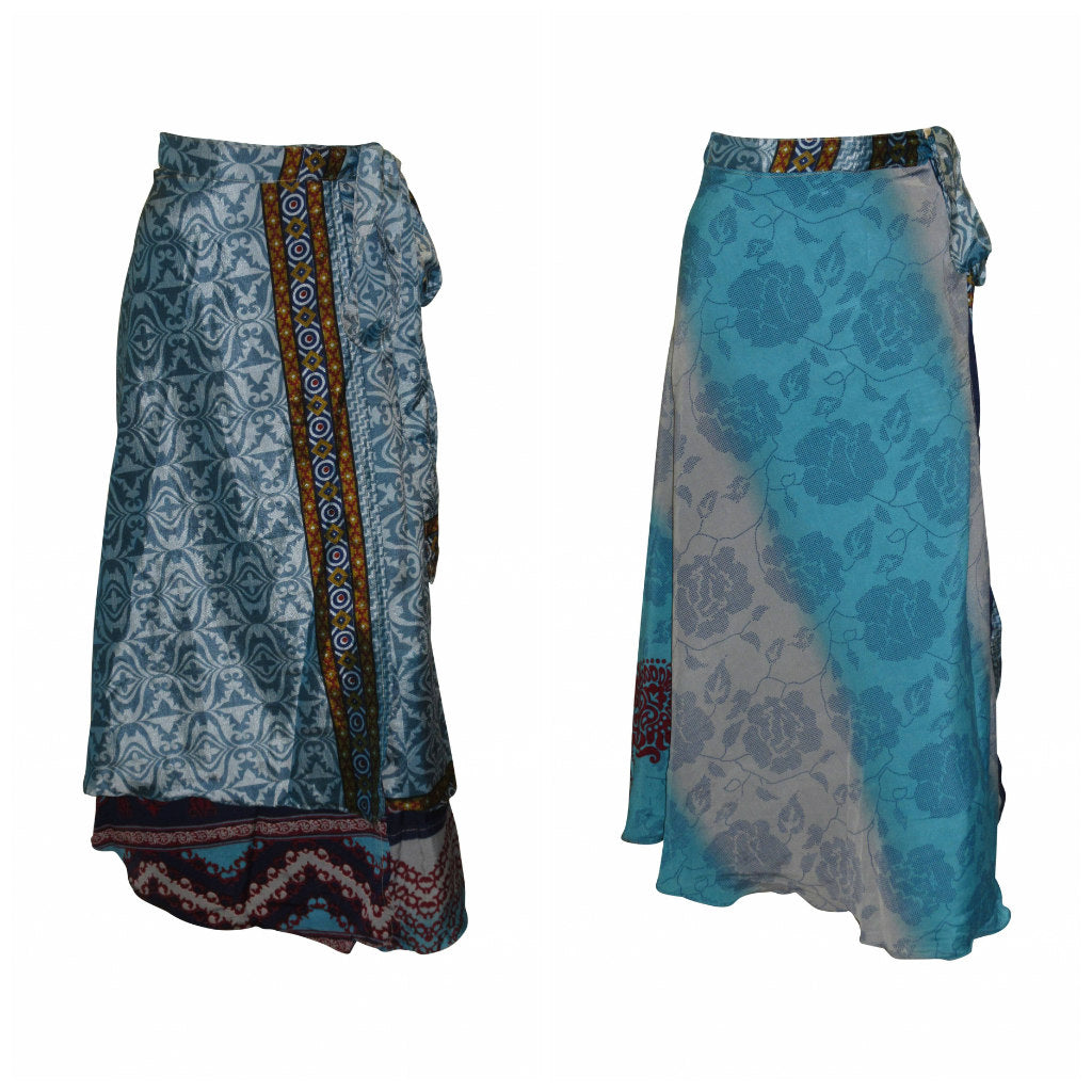 RECYCLED RETRO WRAP AROUND SKIRT LAYERED REVERSIBLE MIDI FREESIZE UP TO 20 P131