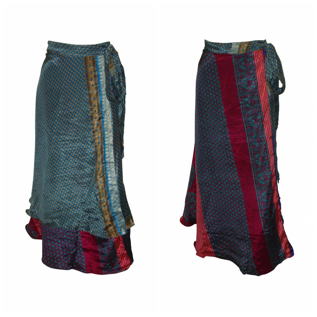 RECYCLED RETRO WRAP AROUND SKIRT LAYERED REVERSIBLE MIDI FREESIZE UP TO 20 P134