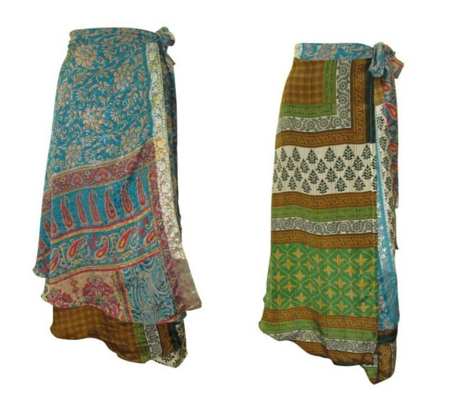 RECYCLED RETRO WRAP AROUND SKIRT LAYERED REVERSIBLE MIDI FREESIZE UP TO 20 P203