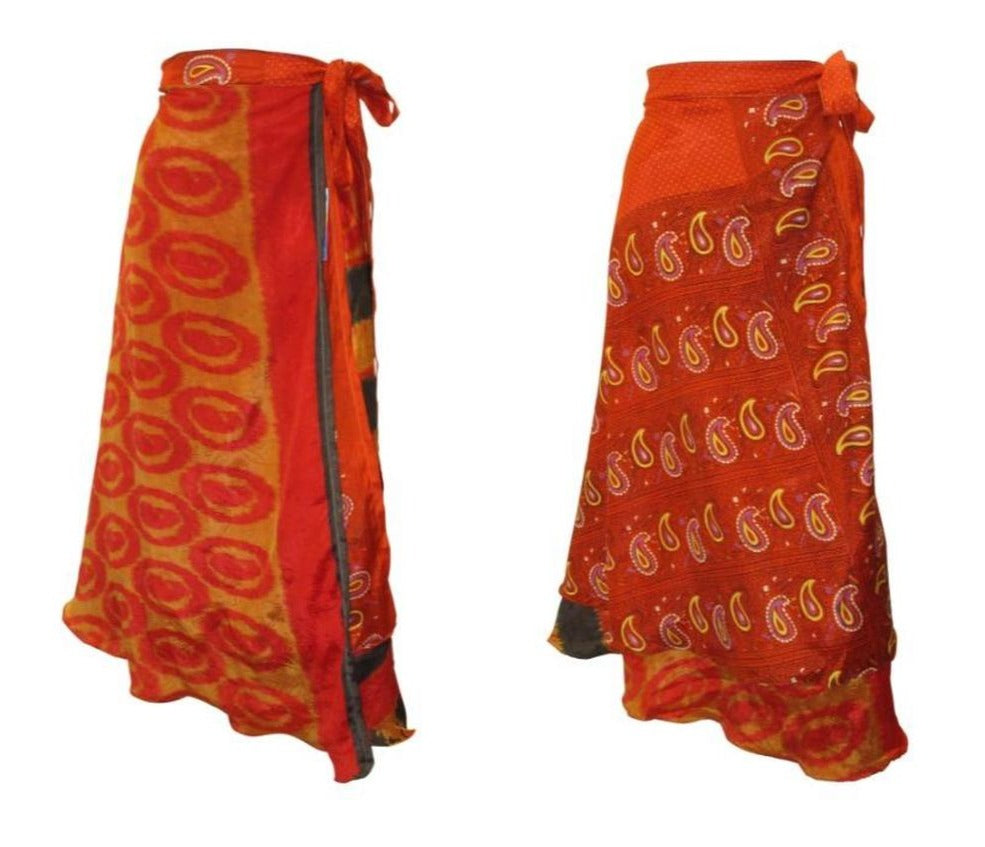 RECYCLED RETRO WRAP AROUND SKIRT LAYERED REVERSIBLE MIDI FREESIZE UP TO 20 P204