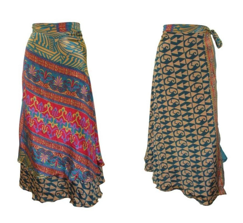 RECYCLED RETRO WRAP AROUND SKIRT LAYERED REVERSIBLE MIDI FREESIZE UP TO 20 P207