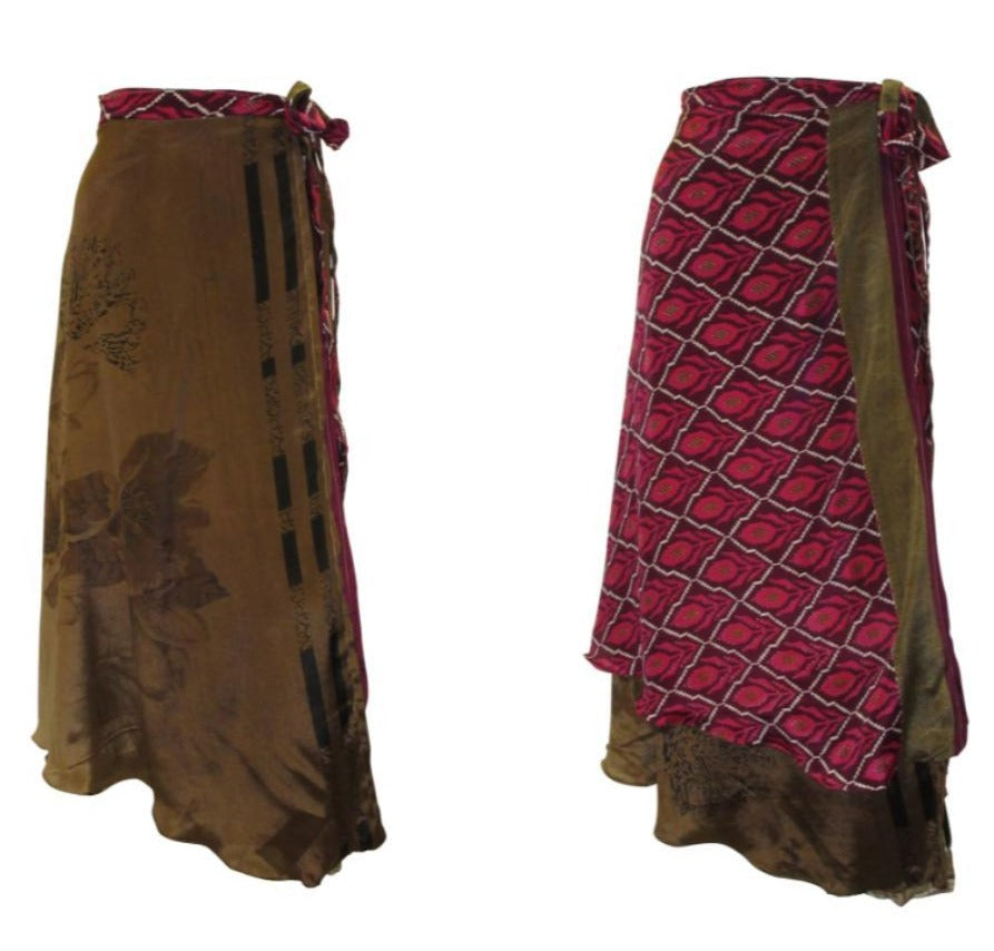 RECYCLED RETRO WRAP AROUND SKIRT LAYERED REVERSIBLE MIDI FREESIZE UP TO 20 P217