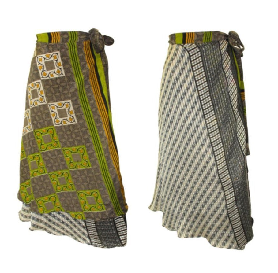 RECYCLED RETRO WRAP AROUND SKIRT LAYERED REVERSIBLE MIDI FREESIZE UP TO 20 P221