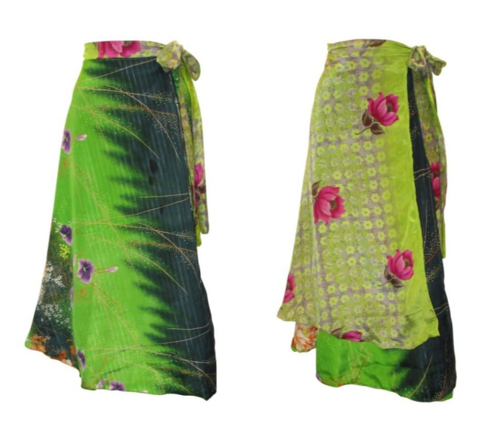RECYCLED RETRO WRAP AROUND SKIRT LAYERED REVERSIBLE MIDI FREESIZE UP TO 20 P224