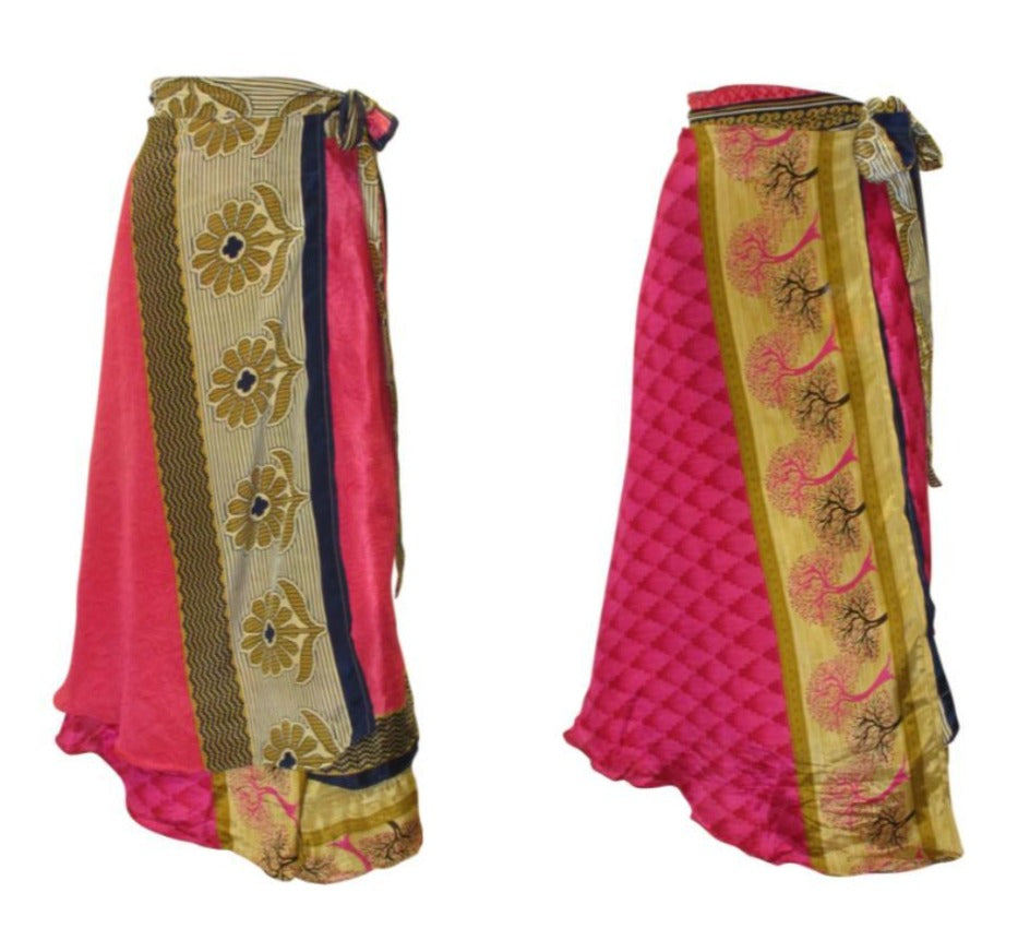 RECYCLED RETRO WRAP AROUND SKIRT LAYERED REVERSIBLE MIDI FREESIZE UP TO 20 P227