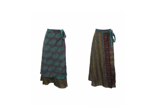 RECYCLED RETRO WRAP AROUND SKIRT LAYERED REVERSIBLE MIDI FREESIZE UP TO 20 P47