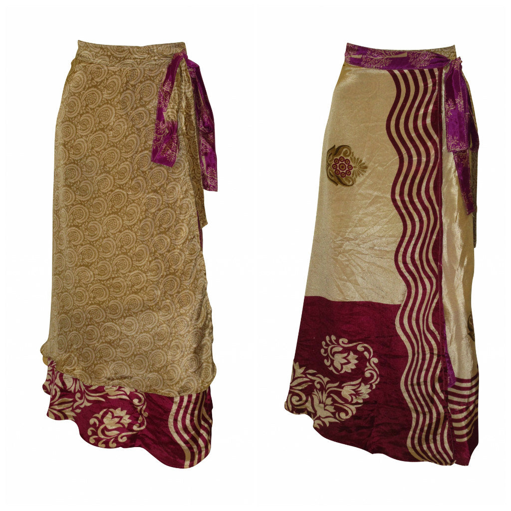 RECYCLED RETRO WRAP AROUND SKIRT LAYERED REVERSIBLE MIDI FREESIZE UP TO 20 P75