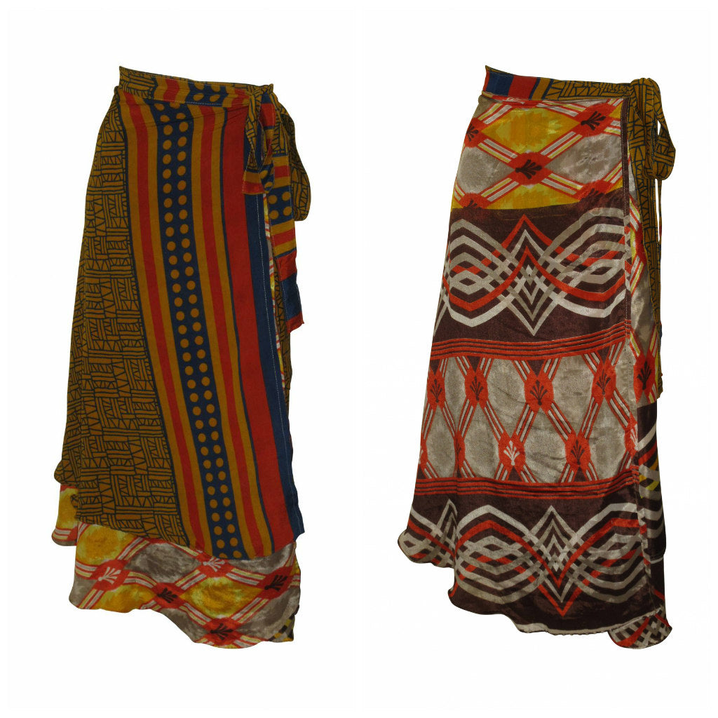 RECYCLED RETRO WRAP AROUND SKIRT LAYERED REVERSIBLE MIDI FREESIZE UP TO 20 P77