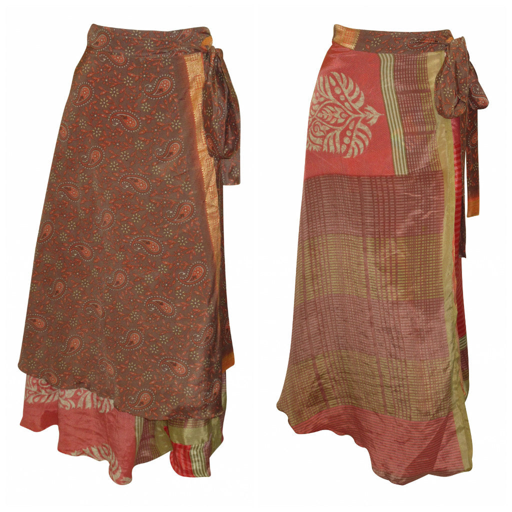RECYCLED RETRO WRAP AROUND SKIRT LAYERED REVERSIBLE MIDI FREESIZE UP TO 20 P94