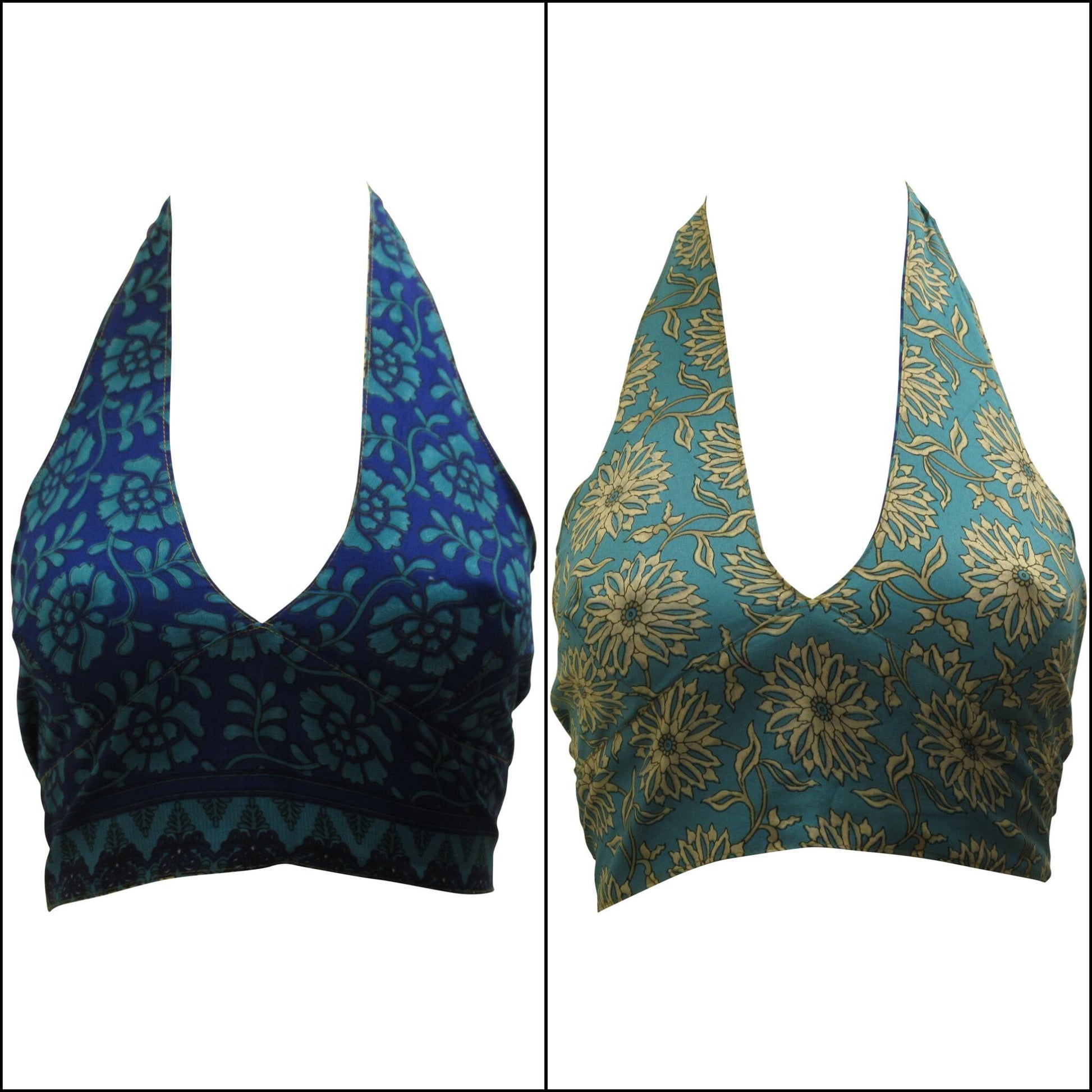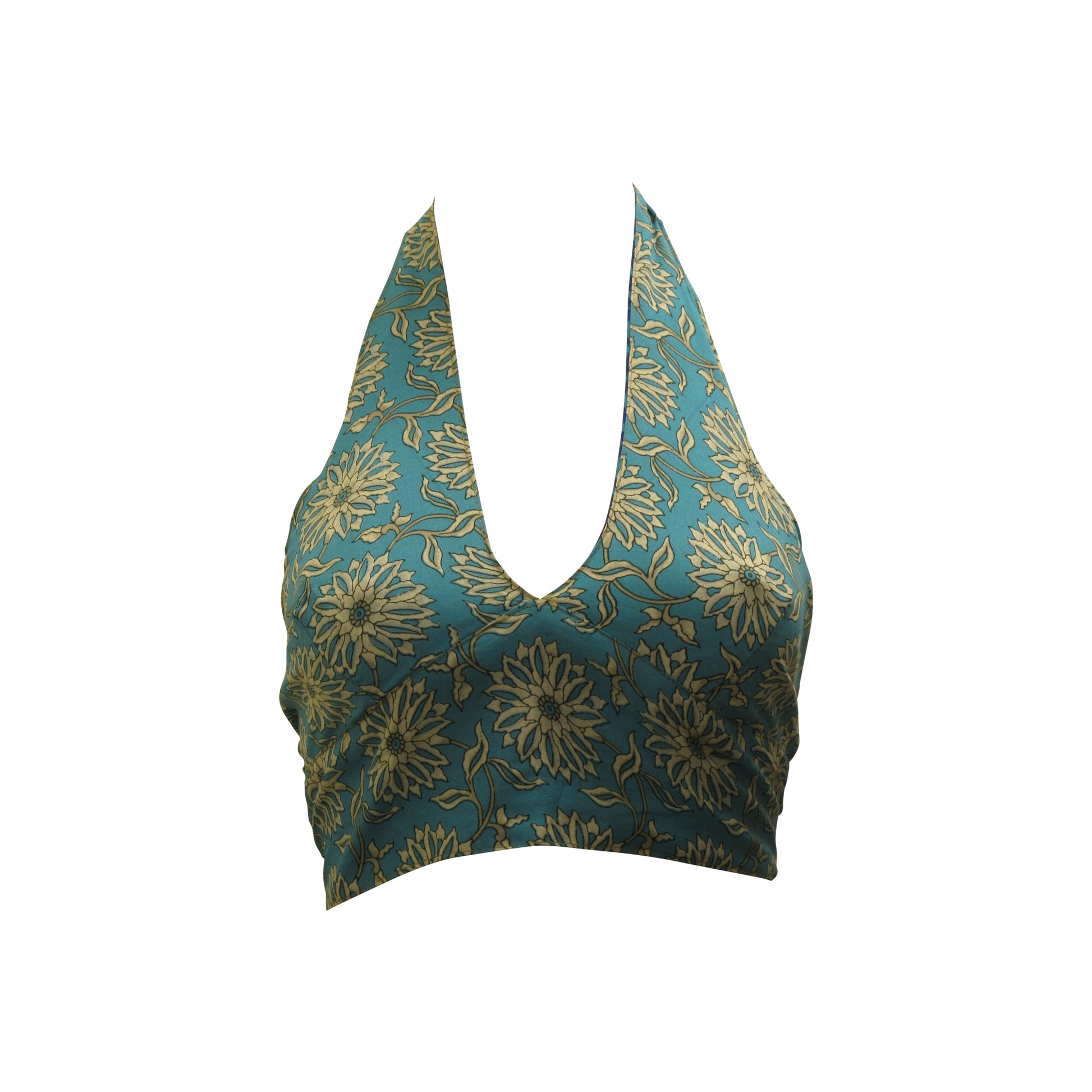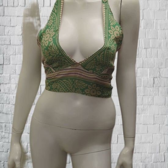 Recycled Reversible Retro Crop Top Boho Festival Halterneck Bralette One Size P100