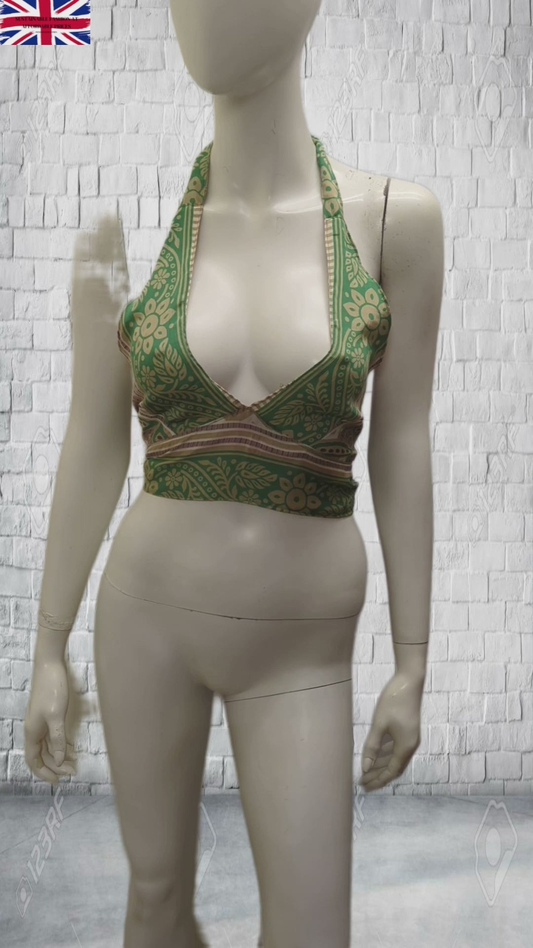 Introducing a stylish and versatile addition to your wardrobe - the Recycled Reversible Crop Top . This boho-inspired halterneck bralette is perfect for any occasion, be it a casual day out or a party. The top is made of lightweight and easy-to-care-for rayon material, which makes it perfect for summer and spring. Featuring a V-neckline and tie closure, this classic-fit top has a retro-inspired design that is sure to turn heads. The top is machine washable and comes in a multicoloured design that is perfect for any season. This one-size-fits-all top is perfect for women who are looking for a comfortable and stylish addition to their wardrobe.