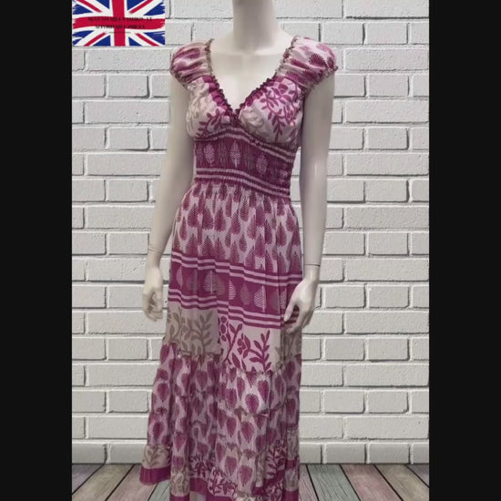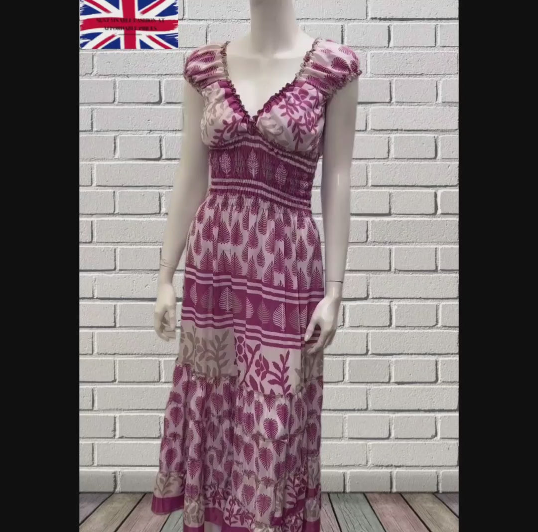 Recycled Sari Fabric V Neck Retro Ruffle Hem Maxi - Midi Dress Free Size Up To 18 P3