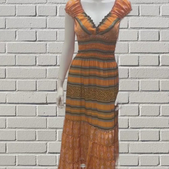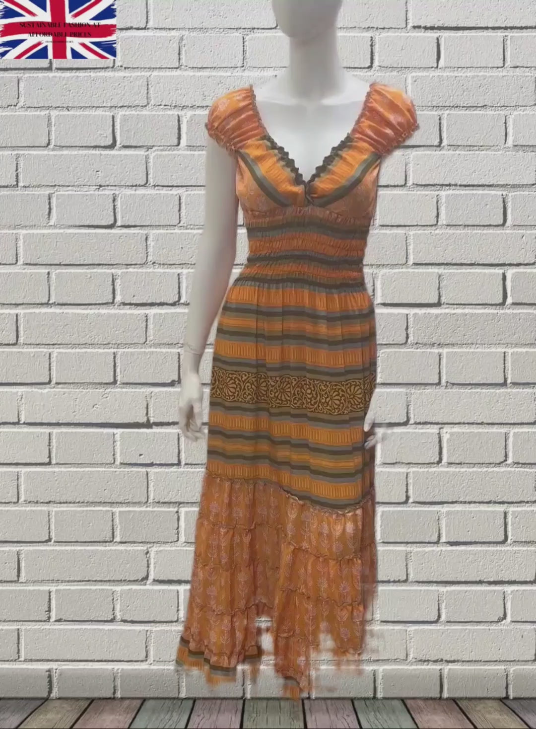 Recycled V Neck Retro Ruffle Hem Maxi Dress Free Size Up To 18 P100