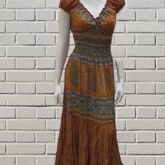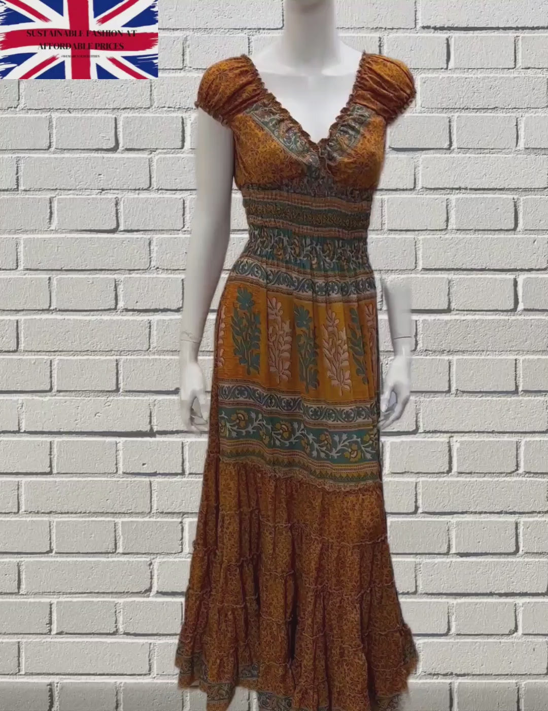 Recycled V Neck Retro Ruffle Hem Maxi Dress Free Size Up To 18 P101