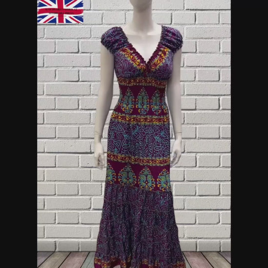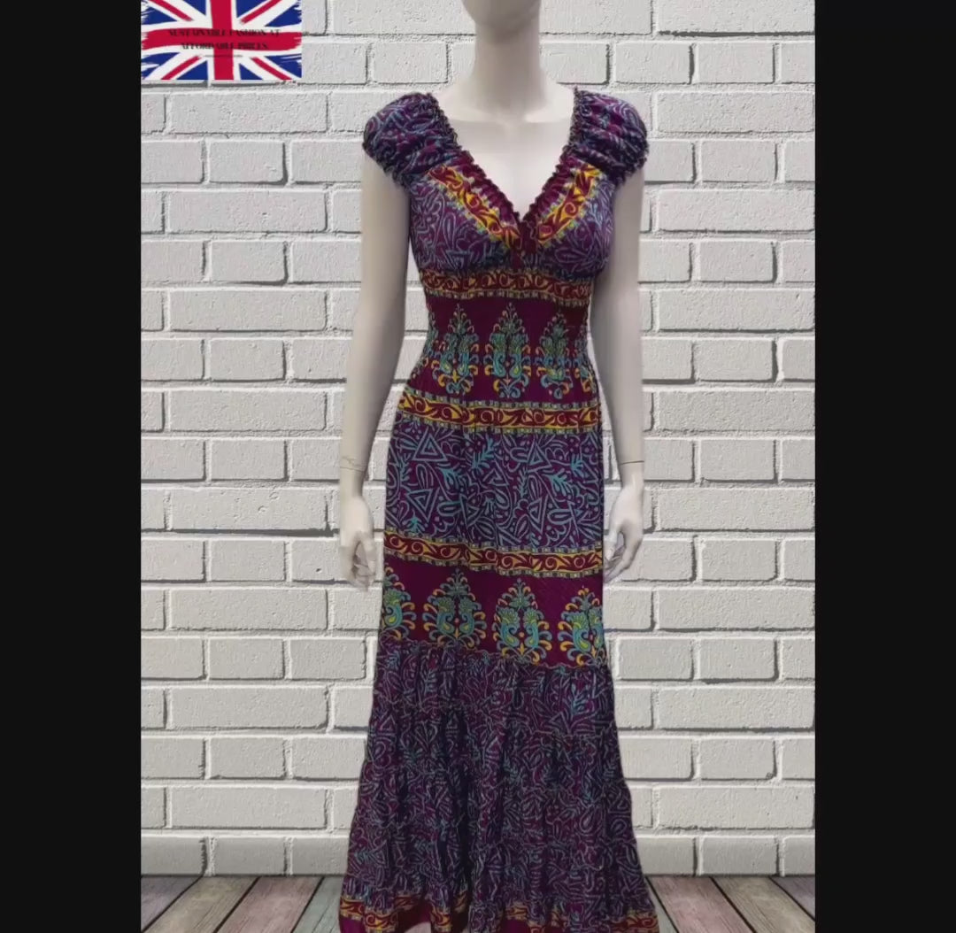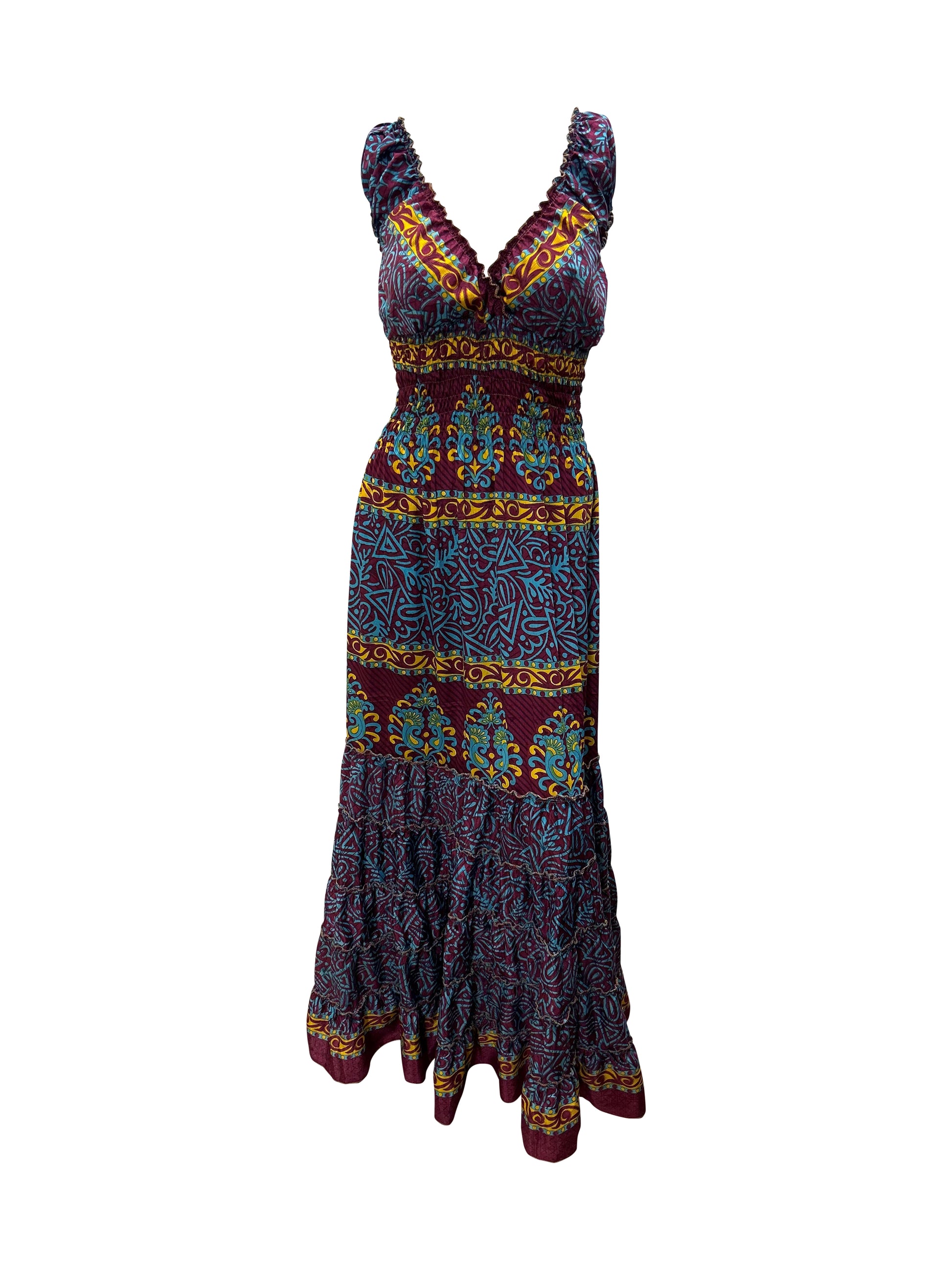 Recycled V Neck Retro Ruffle Hem Maxi Dress Free Size Up To 18 P105