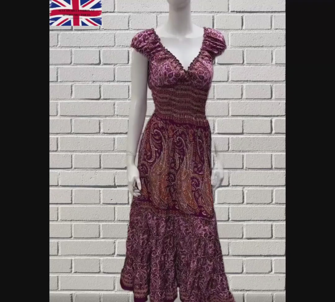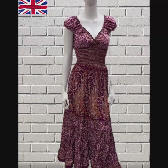 Recycled V Neck Retro Ruffle Hem Maxi Dress Free Size Up To 18 P108