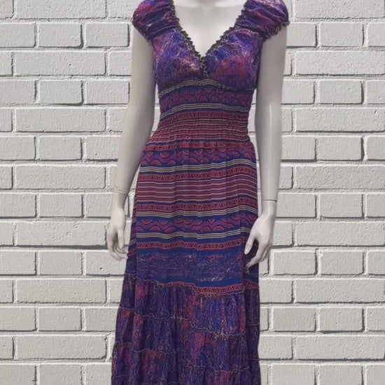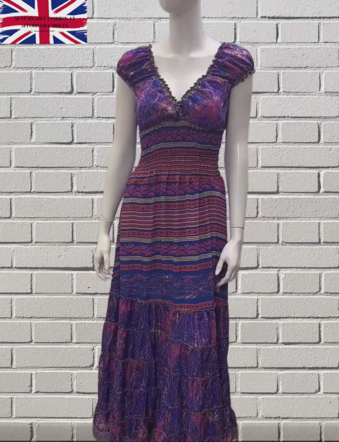 Recycled V Neck Retro Ruffle Hem Maxi Dress Free Size Up To 18 P97
