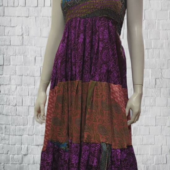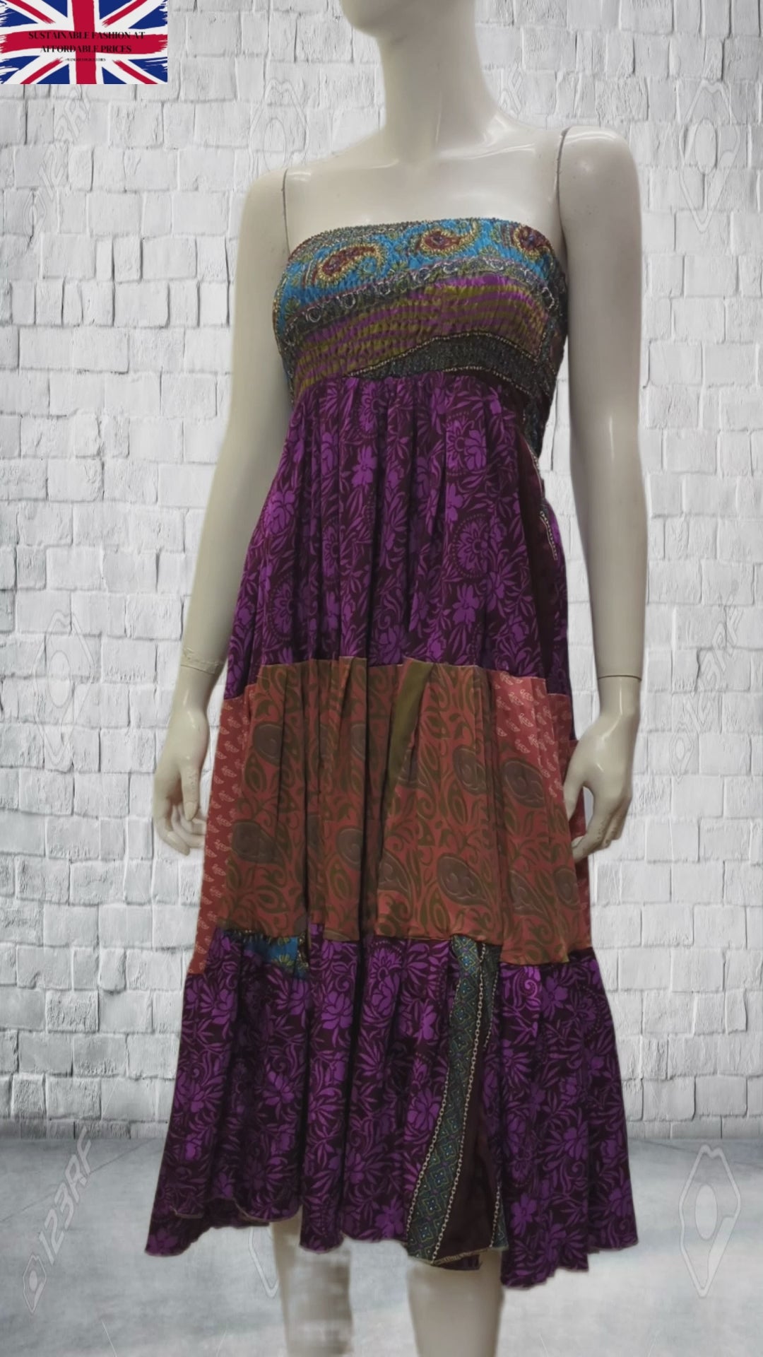Upcycled 2in1 Skirt and Dress Retro Shirred Festival Boho Tiered Flowy Maxi Free Size Up To 20 P14