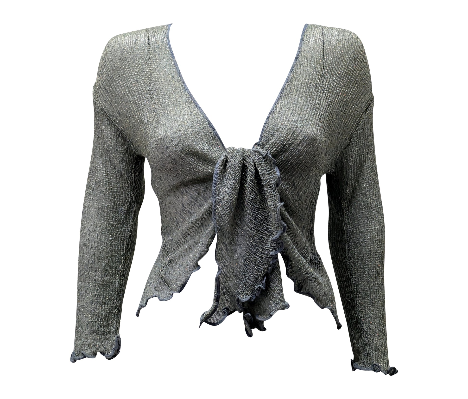 Women's Boho Lurex Knit Shrug Chic Crochet style Cardigan onesize Up To 20 GREY & GOLD