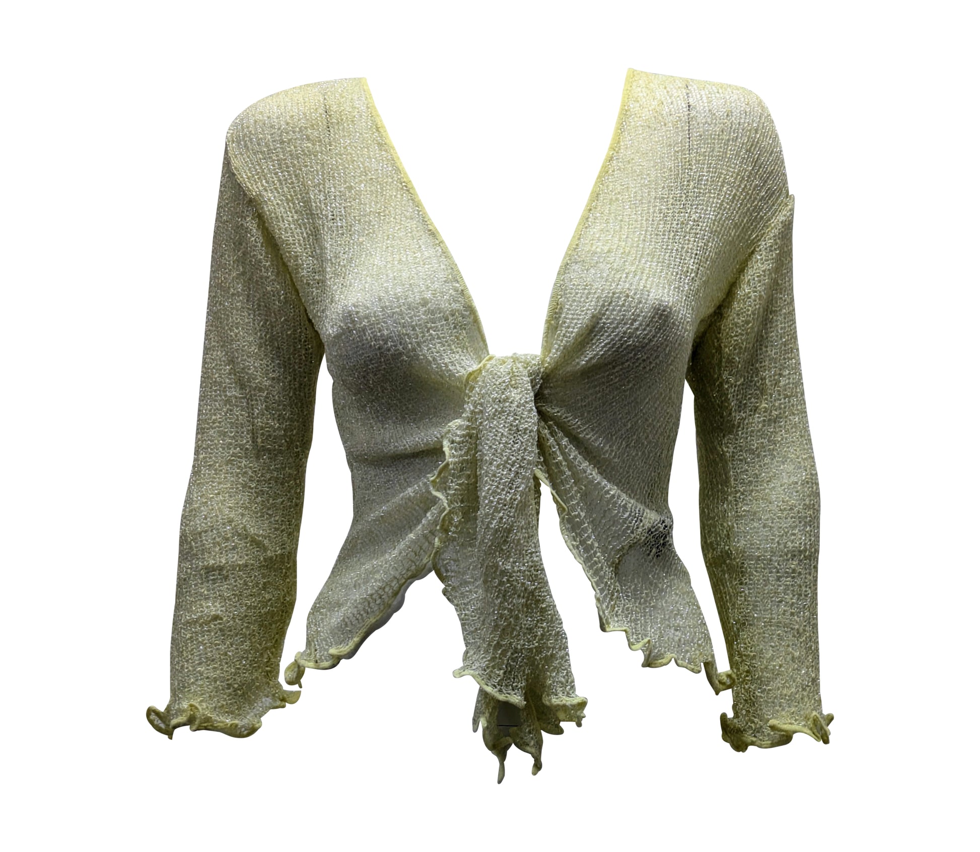 Women's Boho Lurex Knit Shrug Chic Crochet style Cardigan onesize Up To 20 LEMON & SILVER