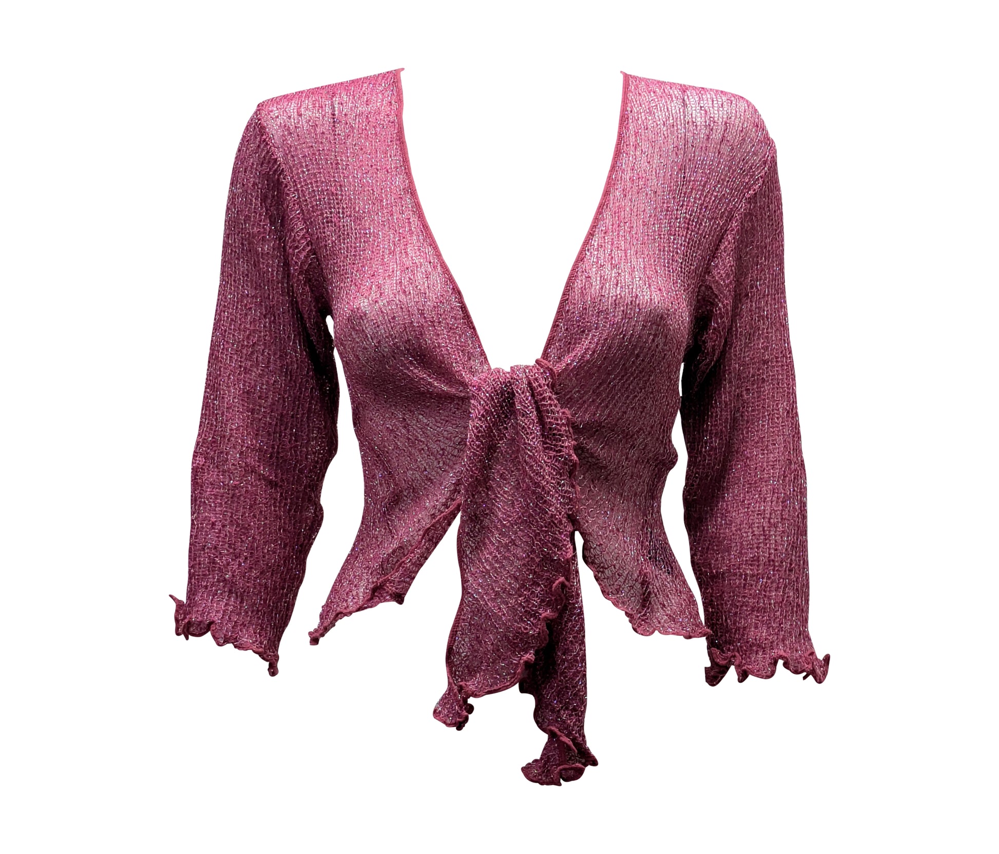 Women's Boho Lurex Knit Shrug Chic Crochet style Cardigan onesize Up To 20 RASPBERRY & SILVER