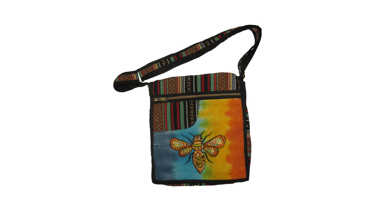 Women's Ladies Hemp Embroidered Aztec Print Honeybee Messenger Bag Front Zip Detail p3